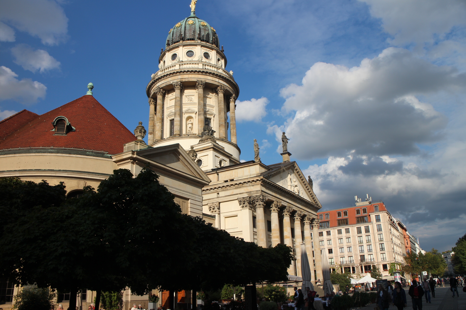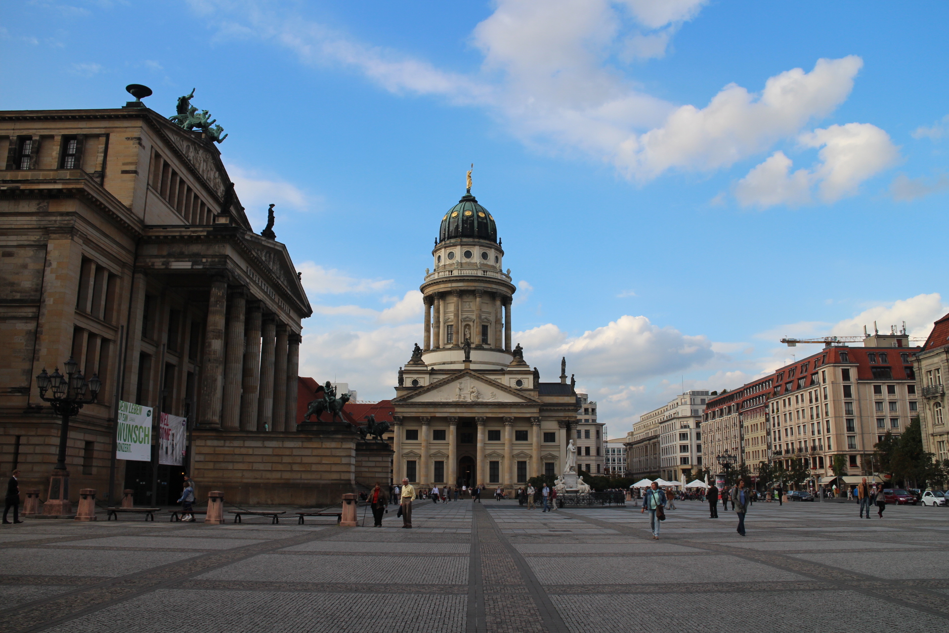 Our first stopping point was Gendarmenmarkt, a lovely square that has twin domed towers bookmarking either end. One is the French Cathedral which has a church next to the tower while the other is the old German Cathedral. In the middle of the two is an impressive concert hall that I’m sure would be a fabulous place for an evening’s entertainment.