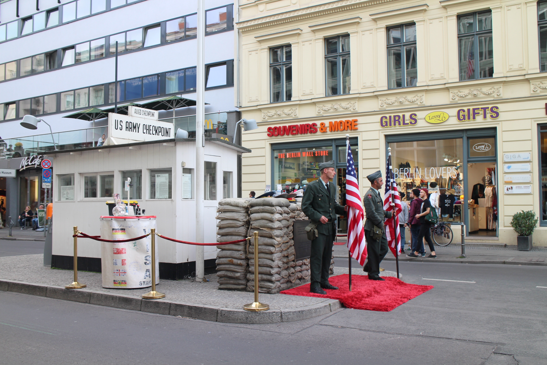 Not much further down Friedrichstrasse is Checkpoint Charlie, once a crossing point between East and West Berlin for diplomats and foreigners, but now the only action it sees is a constant line of tourists waiting to have their photos taken.
