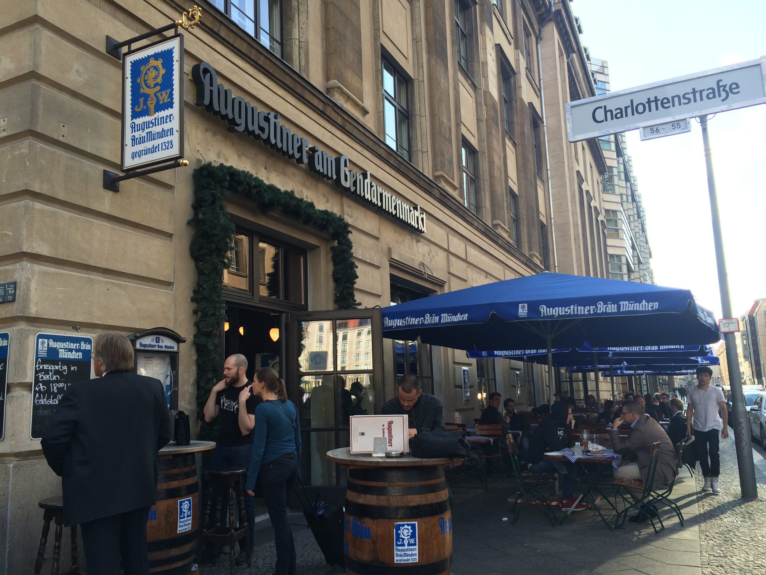 The square has a good range of eating places so we had a late lunch at Augustiner Am Gendarmenmarkt and our first taste of Bavarian food. The sun was out so we opted to sit outside rather than on one of the rustic tables inside the beer hall and considering three of us don’t eat meat we found some pretty good options on the menu.