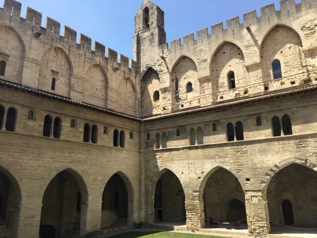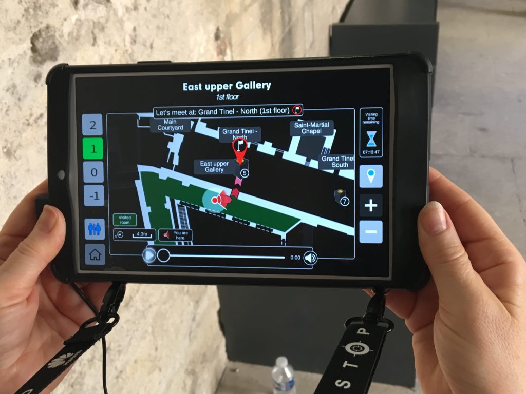 AvignonIt’s an enormous place with thick stone walls and vaulted ceilings. The rooms are vast empty caverns but they’ve been ‘filled’ by a smart multi-media guide called a histopad. It’s like an iPad that you hang around your neck and has headphones plugged into it. As you walk around, it knows where you are and displays maps to locate you and show you the layout of a room.