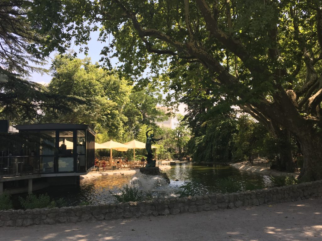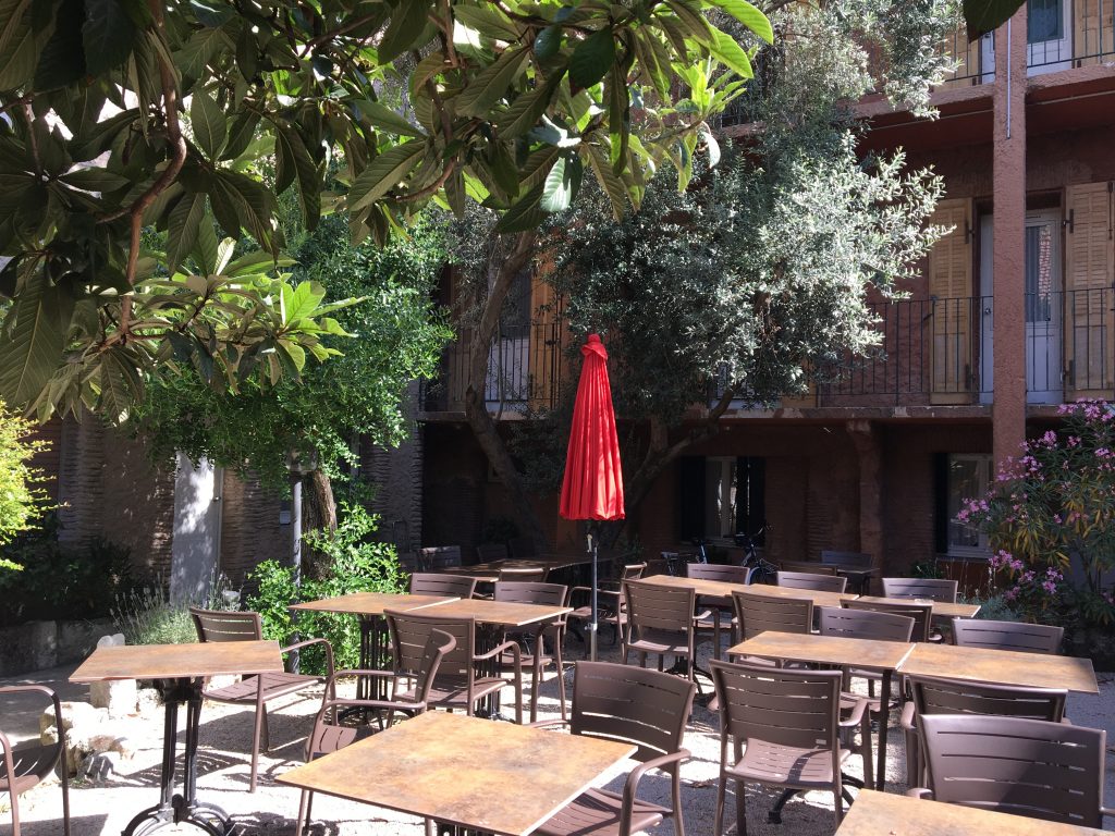 We stayed at Hotel Magnan just inside Avignon’s 800 year old stone walls and as soon as we arrived we knew we’d like starting our days having breakfast in its pretty courtyard garden. With plenty of trees and Provence’s abundant oleander bushes it looked just as I’d imagined the hotel courtyard in my book, so we were off to a great start.