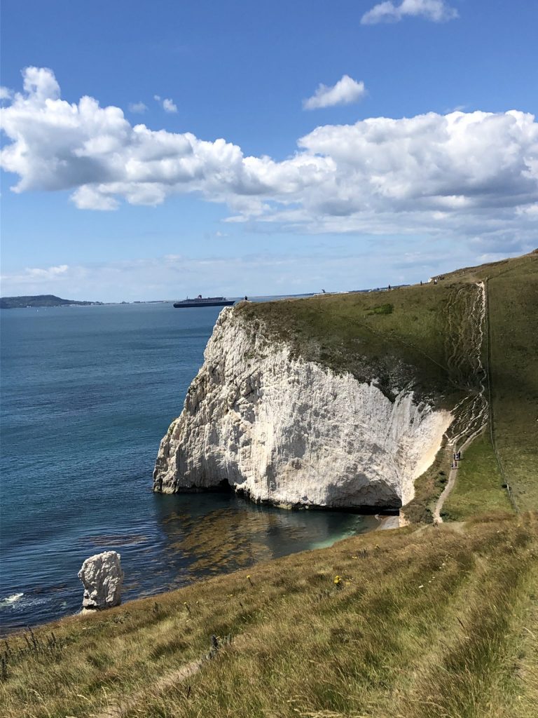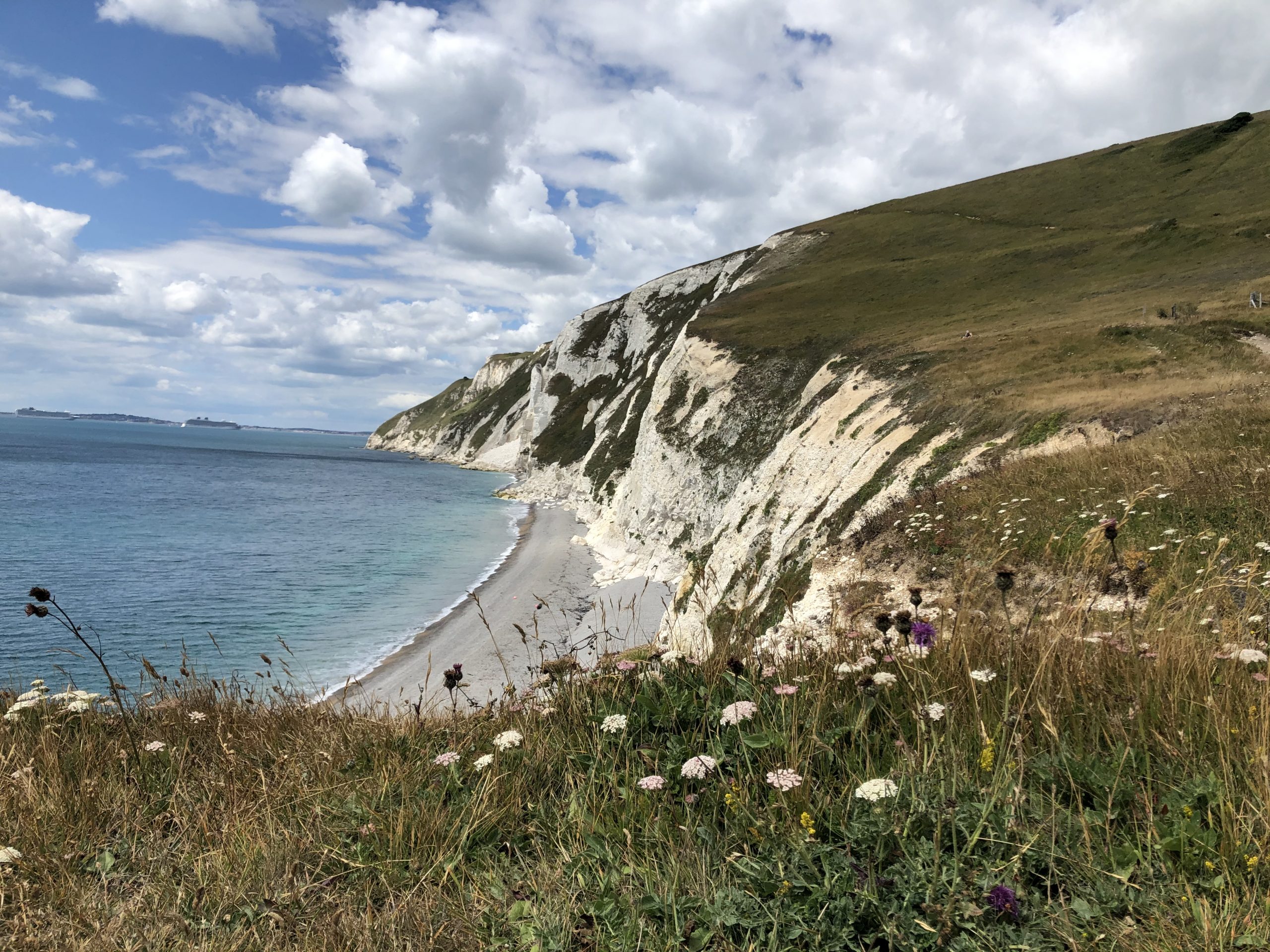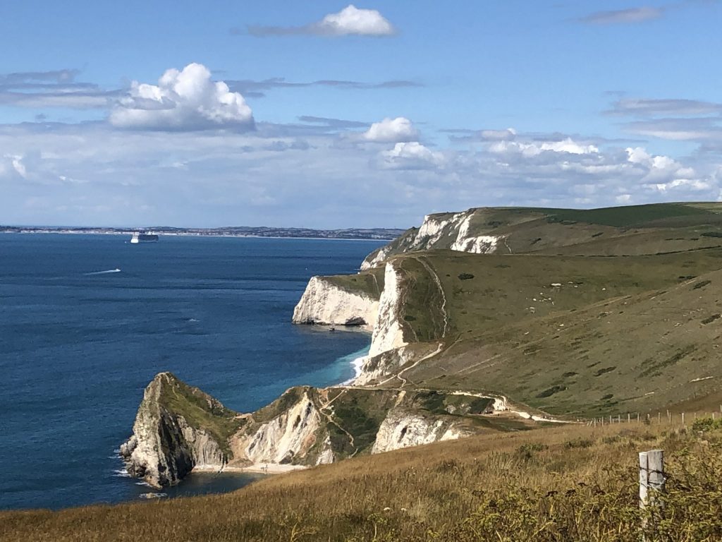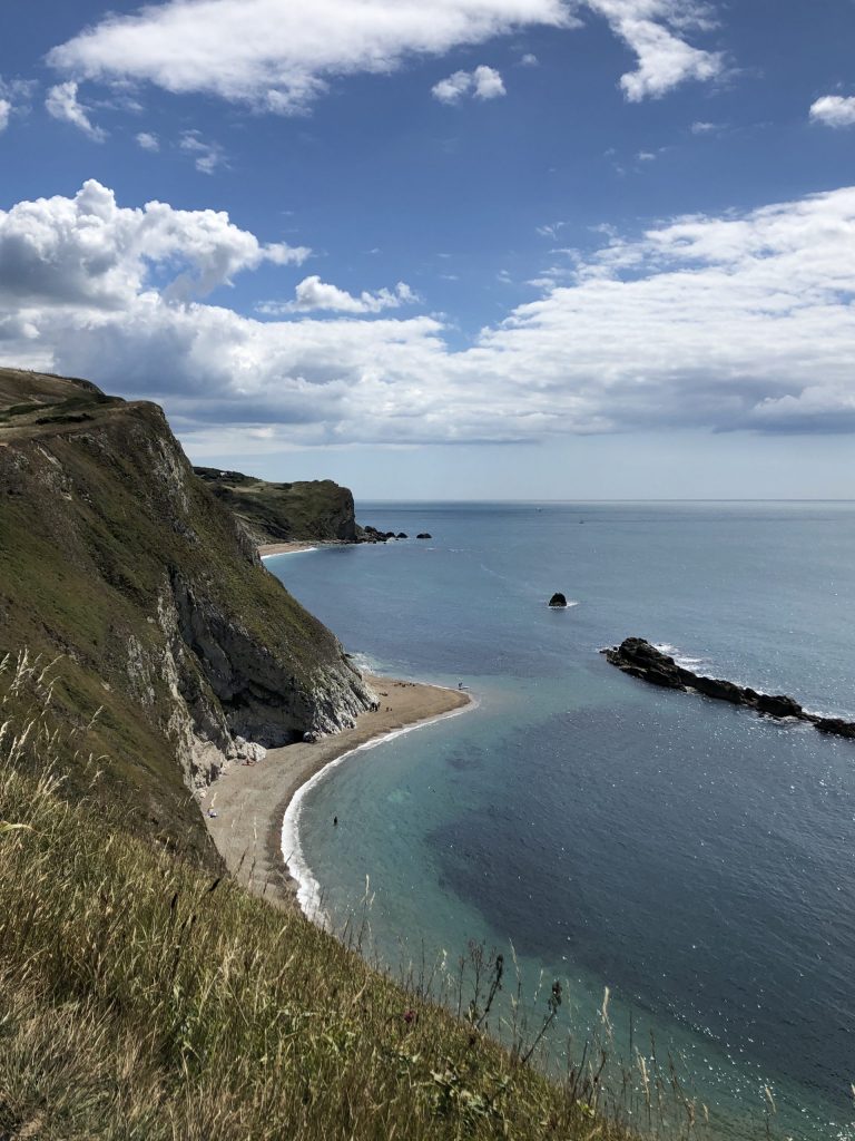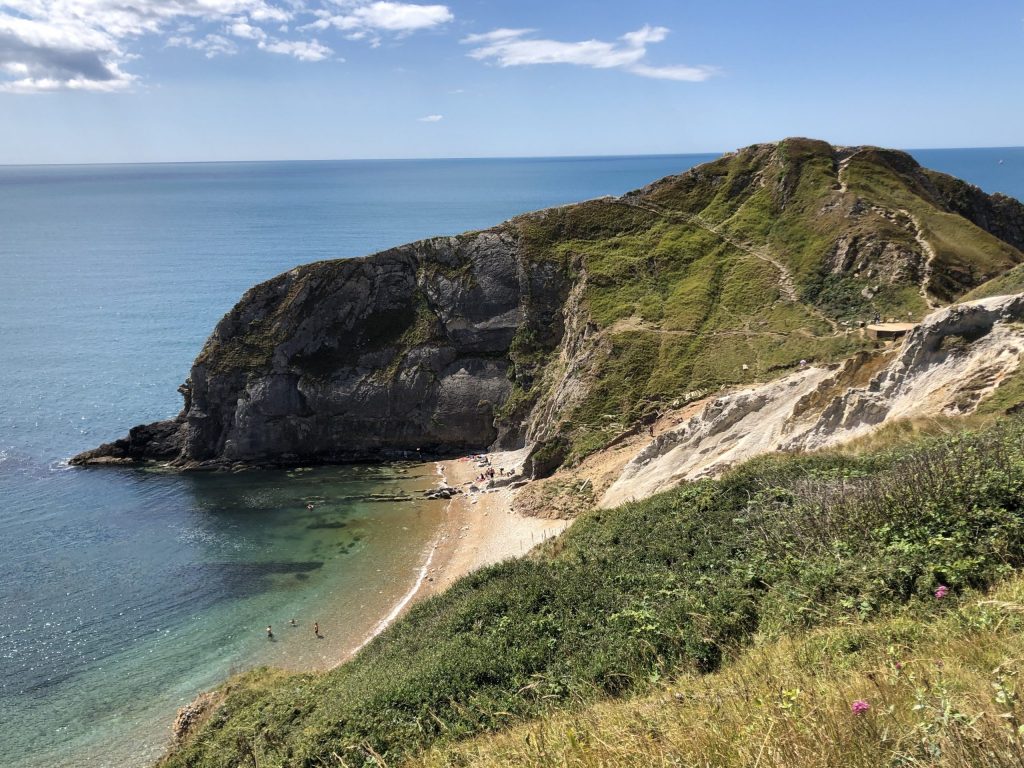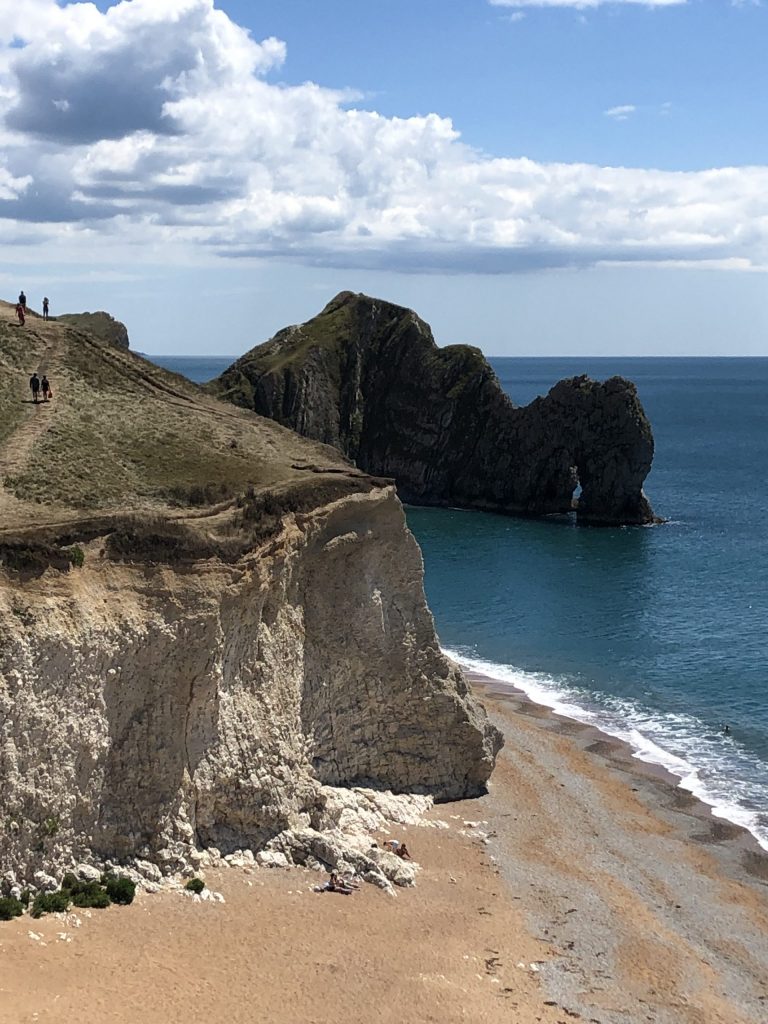After a while you start to head downhill and can see Man O’ War Bay before getting to Durdle Door, a limestone arch, created as a result of softer rocks being eroded behind a hard limestone cliff. It’s a pretty iconic spot so you won’t be the only ones there taking photos, but its well worth seeing, particularly as it will eventually collapse into the sea. It reminded us of Australia’s Great Ocean Road, but it’s a lot closer to home!
