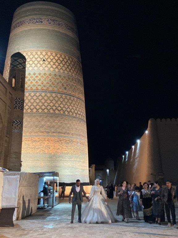 Tea House Mirza BoshiAfter dinner, we went for a walk to experience Khiva after dark. In the city centre, there were lights to illuminate buildings and statues and we saw a bride and groom having their photo taken. Then we headed to the perimeter to end our visit with a walk around the walls of what must be the Silk Road’s most atmospheric city.