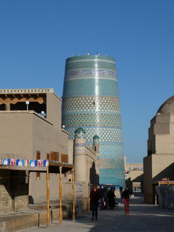KhivaI’d guess that some of Khiva’s most photographed sites are its brightly coloured minaret towers. They were built to ensure the five times daily call to prayers would carry across the city and be easily heard. The short and fat Kalta Minar is probably the most recognisable.