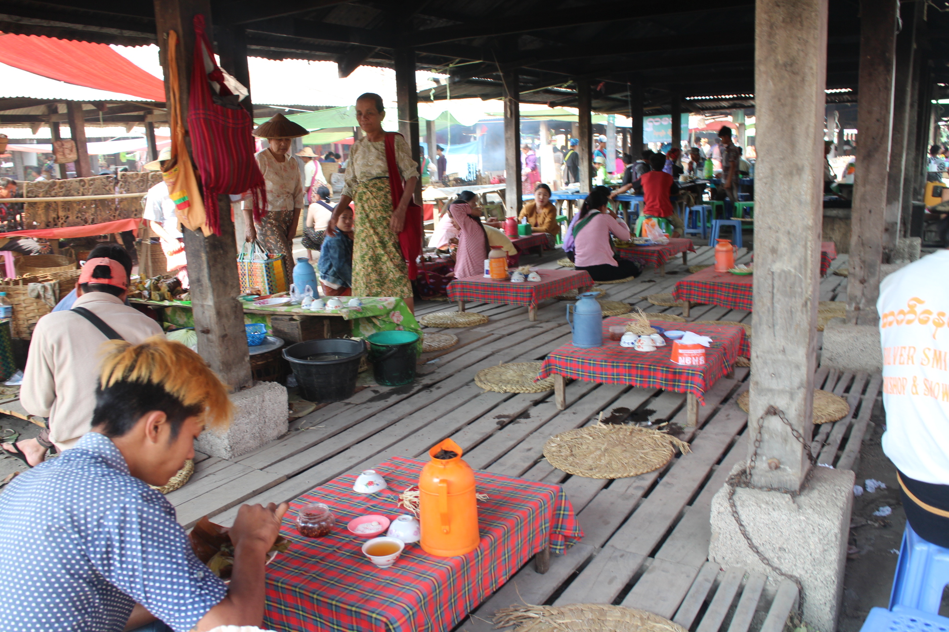 The selling of many of the fruits of their labours happens at a rotating five day market which pops up in different towns around Inle Lake on a five day cycle. The day we visited, the market was in Nam Pan and as our driver rapidly overtook other boats and the ubiquitous stupas started to appear in the distance, it felt like we were in a race to get there before it all sold out.