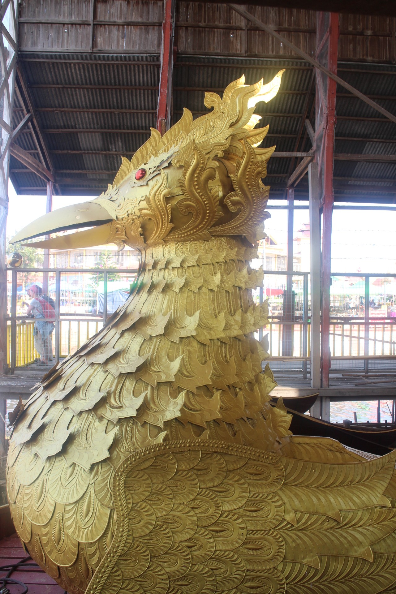 Another good stop is the Phaung Daw Oo Paya where there are five Buddhas that look like blobs because of all the gold leaf that’s been stuck on them. That happens when they are taken by golden barge on a procession around Inle Lake to 20+ towns and villages for 18 weeks in September and October every year. Though there is one that doesn’t go now. It went missing once and superstition is that it’s bad luck to take it out. So while the others all get bigger that one stays just the same.