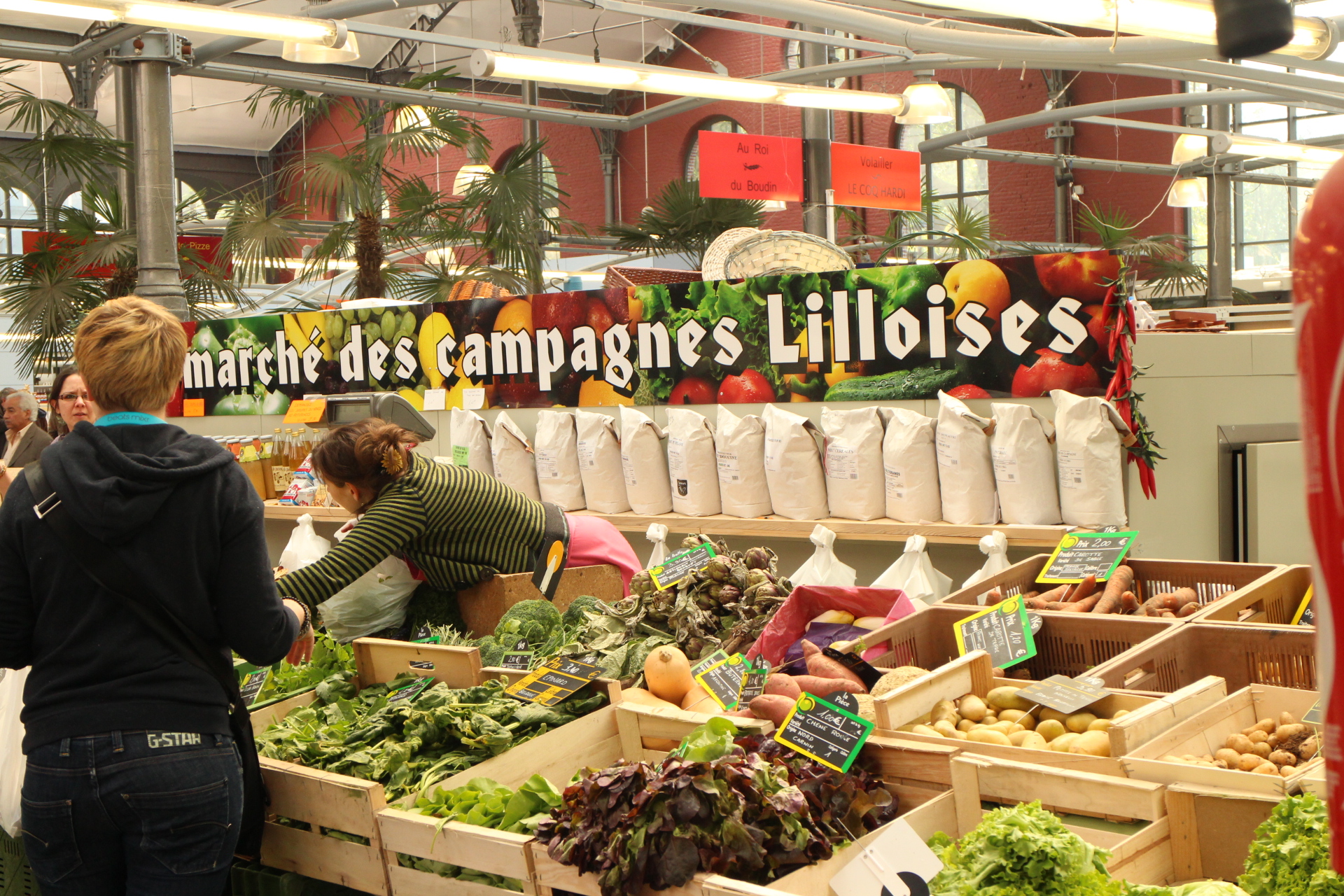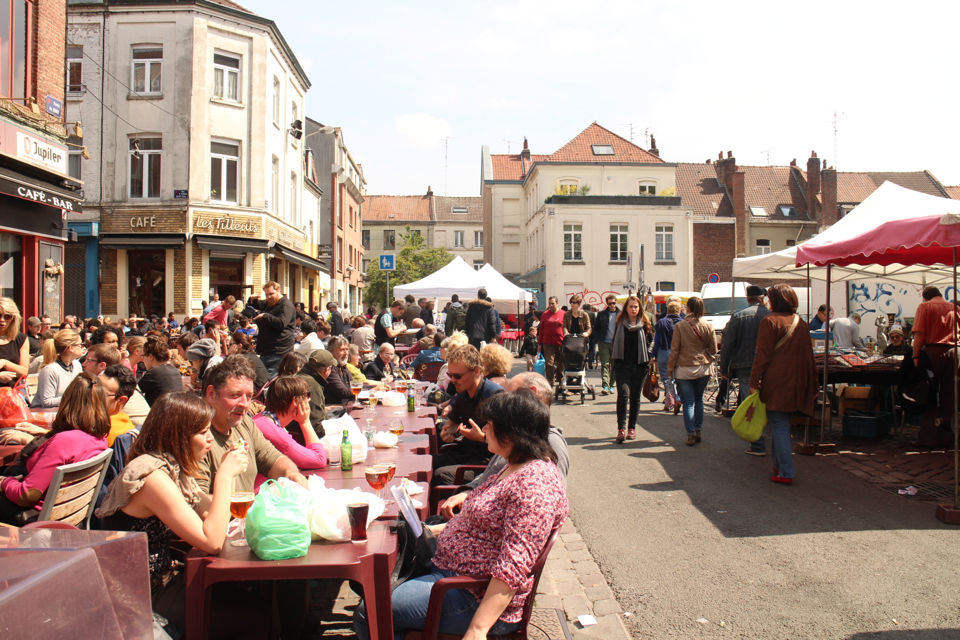 In front of the Roubaix town hall that Sunday was a lively flower market – the third market we’d seen that day having visited two earlier in the morning. First we jumped on the metro for a couple of stops to a residential area called Wazemmes. The market there is huge and sells everything from clothes, bags and shoes to flowers, antiques and books. Around it are food stalls and vans, bars with outside tables and oddly lots of mobile phone shops. Its busy and bustling, packed with locals stocking up for the week, particularly in the covered market where colourful vegetables vie for space with meat, fish and tempting French cheeses.