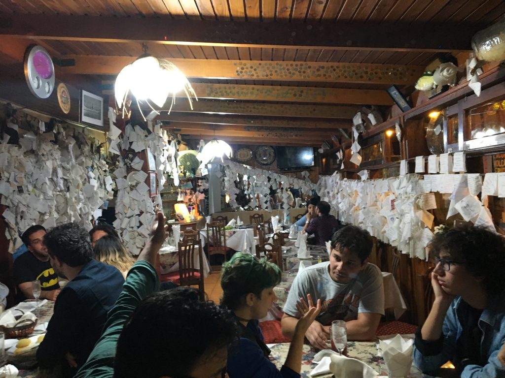 When we went back it wasn’t long before we knew we’d make the right choice. The food was fab, the staff were brilliant and the decor is totally unique. The place is covered in bits of paper with messages written by diners and attached with mini pegs.