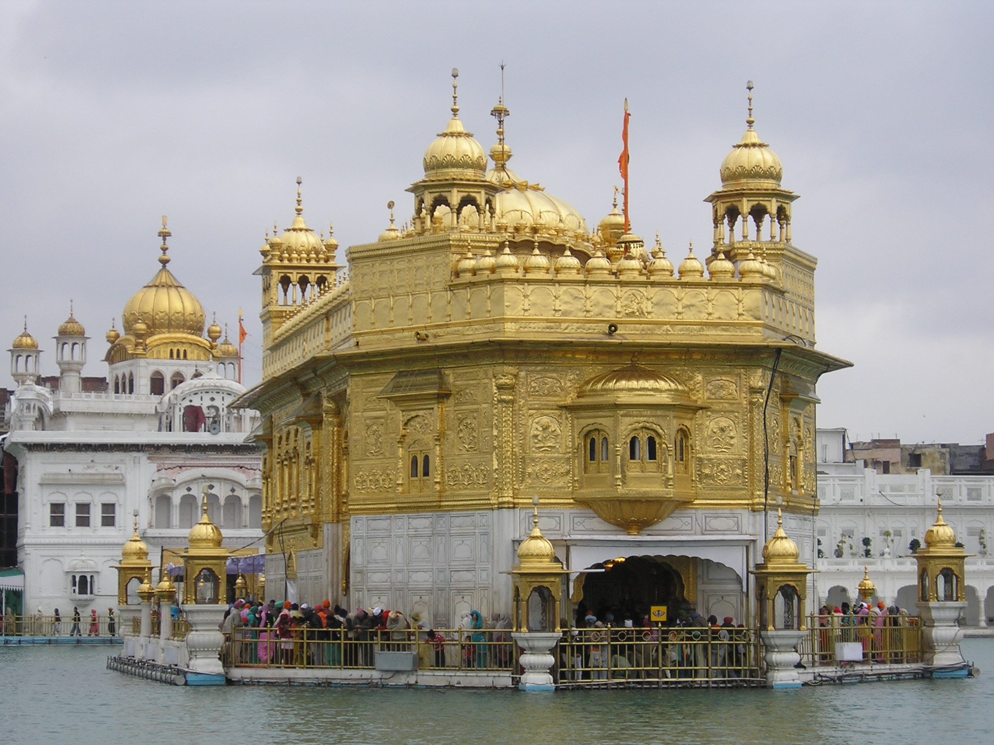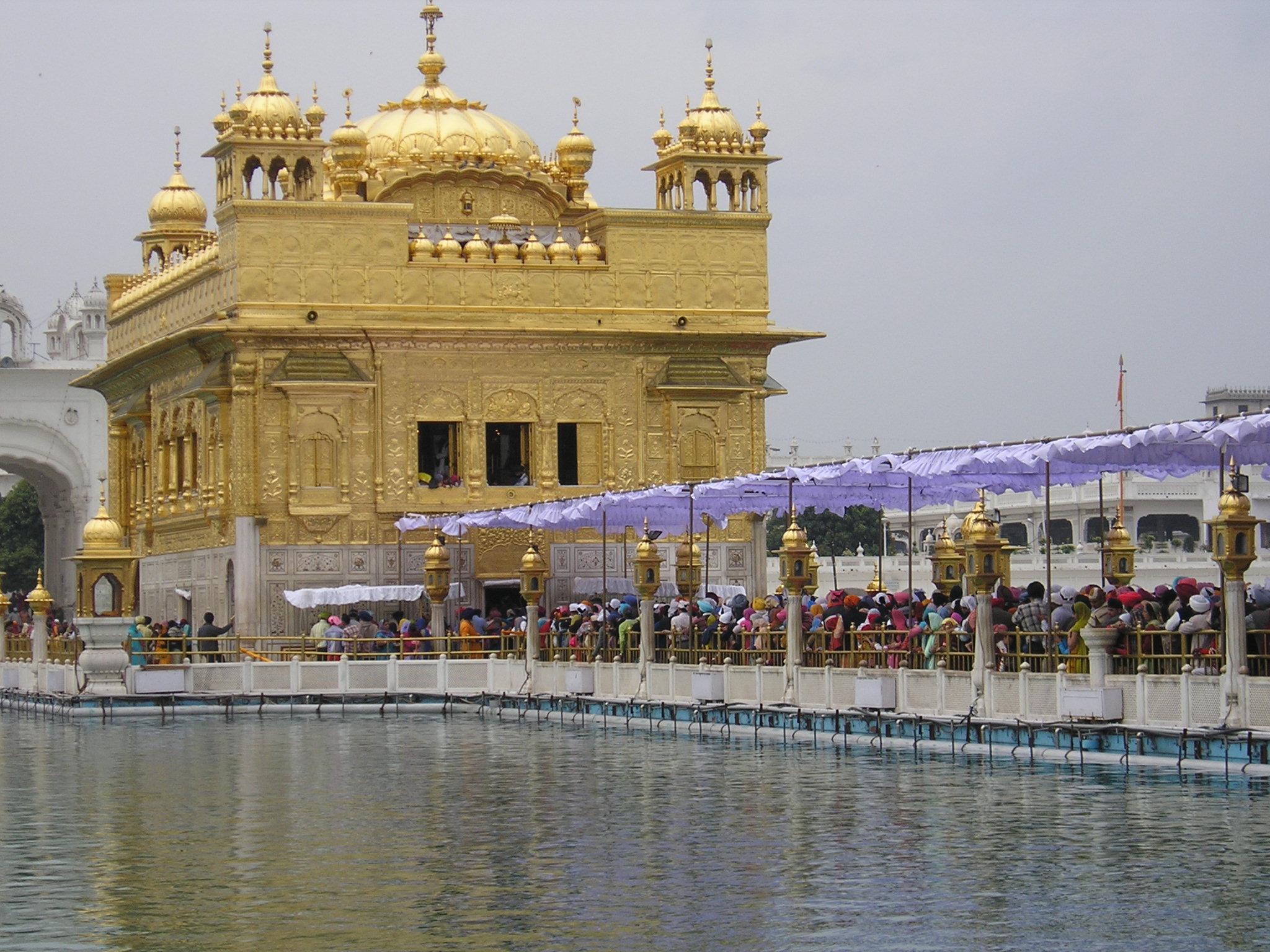 Whether you’re a pilgrim or a tourist you observe the same rules, so shoes come off, feet are washed and head is covered before entering the complex. Once inside you simply meander slowly around the marble walkway that surrounds the pool and marvel at the Hari Mandir (the actual temple) that glistens in its midst.