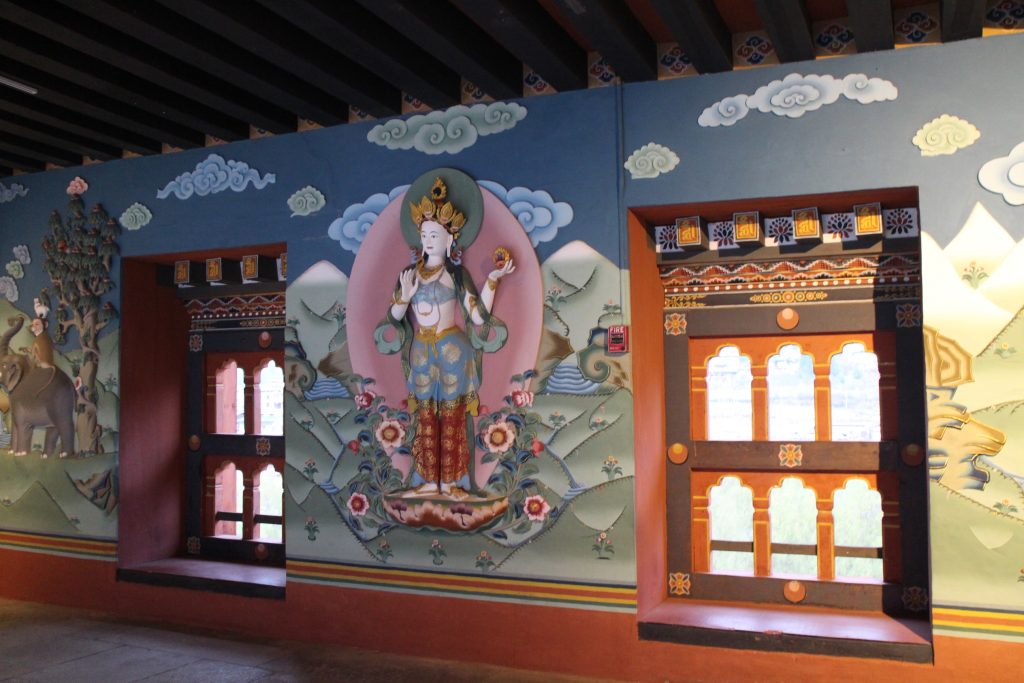 As mentioned the capital has a wide variety of sights to see and we started at Buddha Dordenma, otherwise known as Big Buddha. It’s a huge statue with a temple at the base that features paintings telling the story of Buddha and others showing the God of Compassion. There’s a four headed Buddha, gold painted pillars carved with celestials and dragons and there are paintings on the ceilings too.