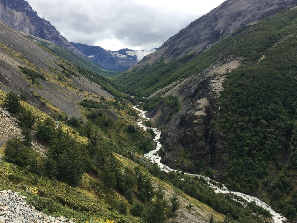Sitting in the sunshine in Patagonia’s beautiful French Valley, part of the Torres del Paine national park, with a huge glacier on one side and turquoise blue lakes on the other. Not a terrible place to sit and contemplate life for a while.