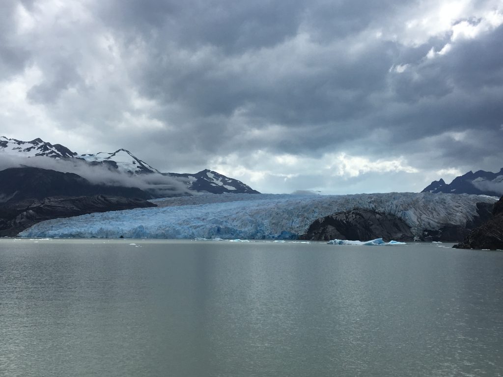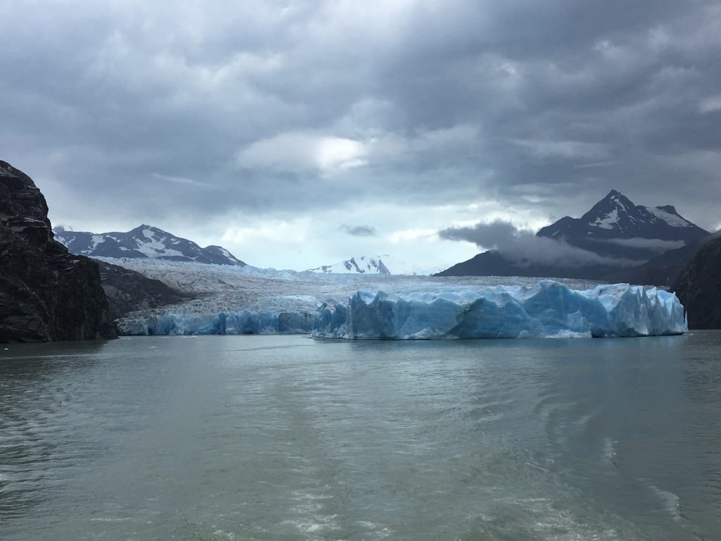 Torres del PaineTo start with we looked out of the window, but quickly decided it was worth getting wet to get a better view of the glacier. And then by some miracle, once we were on deck, it stopped. So we were able to stay and fully appreciate the stunning Grey Glacier which really is a highlight of Torres del Paine national park.